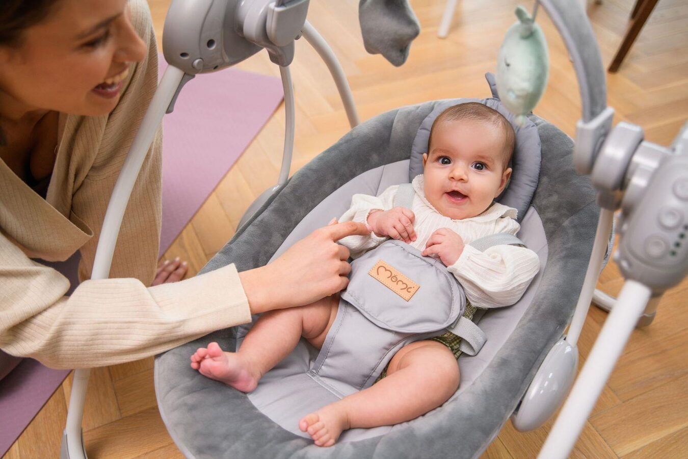 MoMi LISS je elektrické houpátko se stabilní a skládací konstrukcí, která usnadňuje skladování a šetří místo. Nabízí 5 rychlostí houpání a praktický časovač, díky kterému se houpátko automaticky vypne. O zábavu se postará 6 vestavěných melodií a hrazdička s hračkami, které podněcují dítě ke hře.