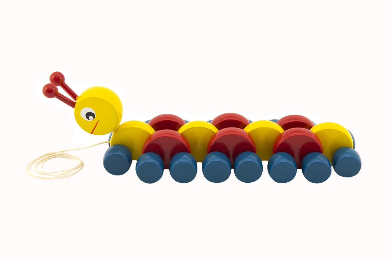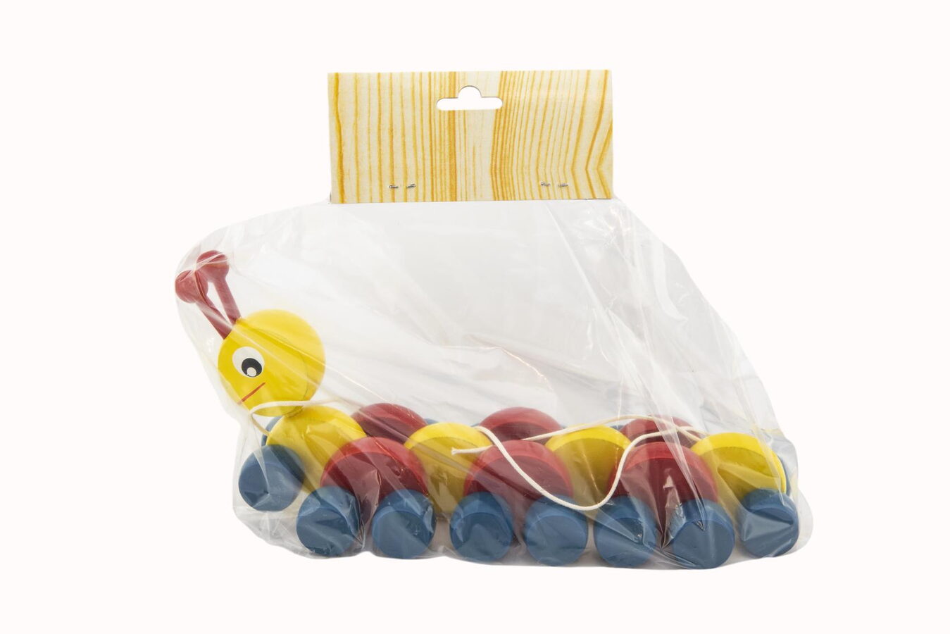 Dřevěná tahací housenka pro malé děti. Vyrobeno z kvalitního dřeva. Velikost 27 cm.
