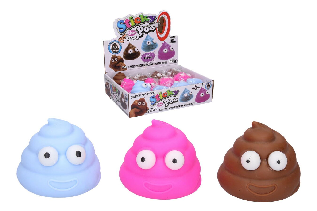 Hovínko mačkací. Velikost 6 cm. 12 ks display box. 3 varianty - hnědá, modrá, růžová.
