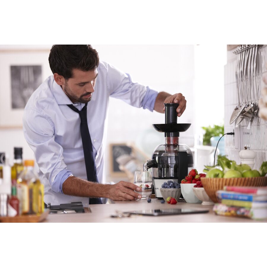 Maximum šťávy. Minimum námahy.Vše v jednom kompaktním designu.Vše, co čekáte od odšťavňovače – vysoké procento vymačkané šťávy, čištění trvá méně než 1 minutu – a to vše v kompaktním, polovičním designu . Udělejte si radost a dopřejte si každý den domácí ovocnou šťávu.