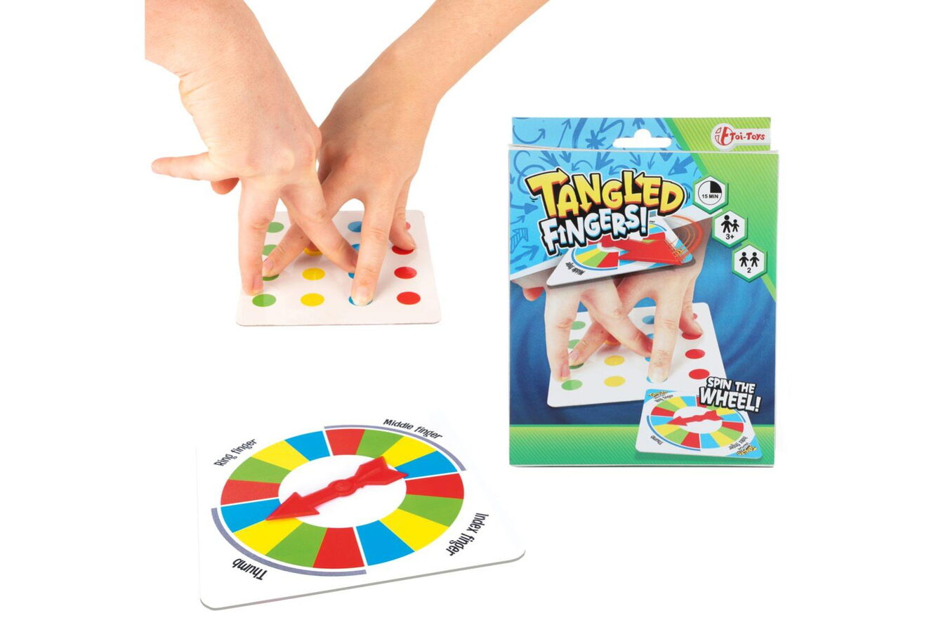Otočte kolem a položte prsty na správnou barvu. Hra je výzvou pro flexibilitu a rovnováhu hráčů, když kroutí prsty, aby odpovídaly pokynům, což často vede k zábavným a zamotaným pozicím rukou. Je to zábavná a poutavá hra, kterou si můžete užít s přáteli a rodinou na menším prostoru.
