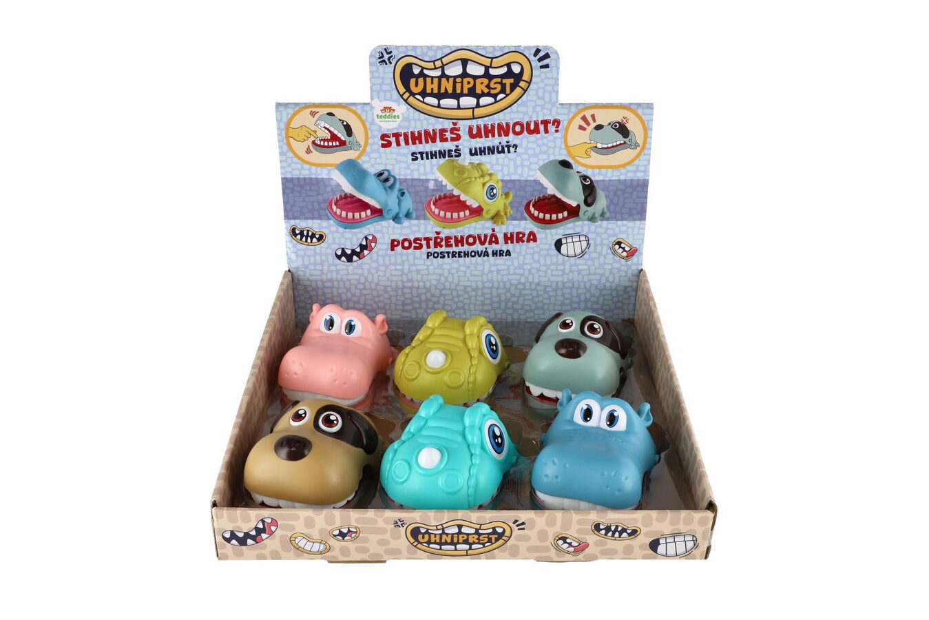 Hra postřehová UHNIPRST kousání prstů zvířátko plast 12x16cm 6 druhů 6ks v boxu