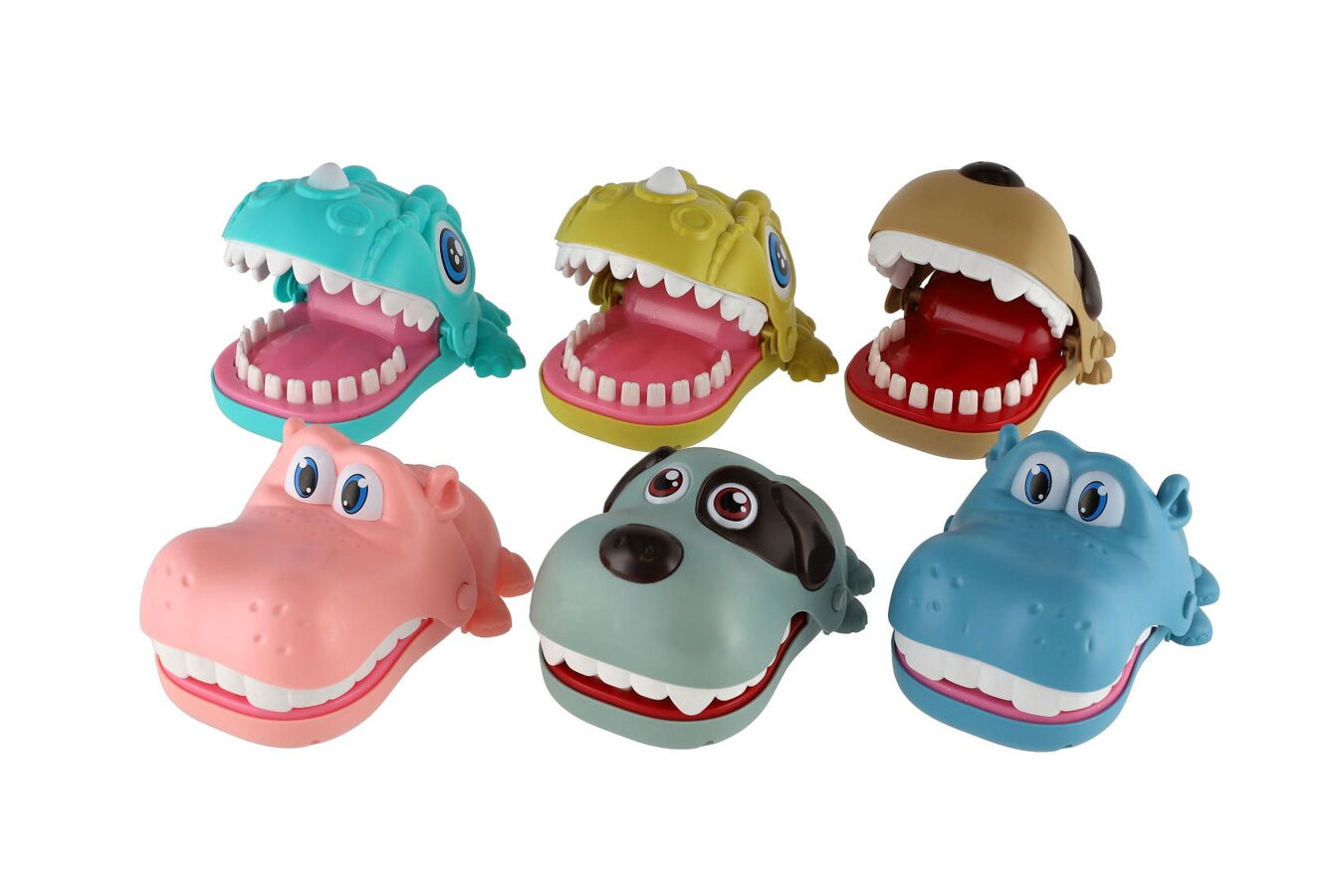 Zábavná postřehová hra zvířecí zuby, kdy zvířátko otevře tlamu a děti se střídají a postupně zatlačují jeho zuby. V určitý moment zvířátko tlamu zaklapne. Ten, koho zvířátko nekousne, vyhrává.