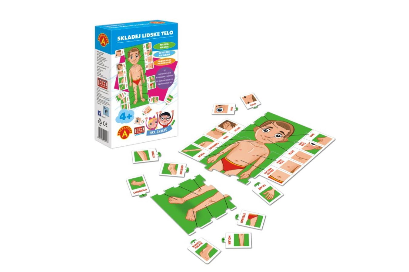 Obsah balení: 3 ks velkých destiček z pevného kartonu, 18 ks malých destiček s částmi těla, český a slovenský návod