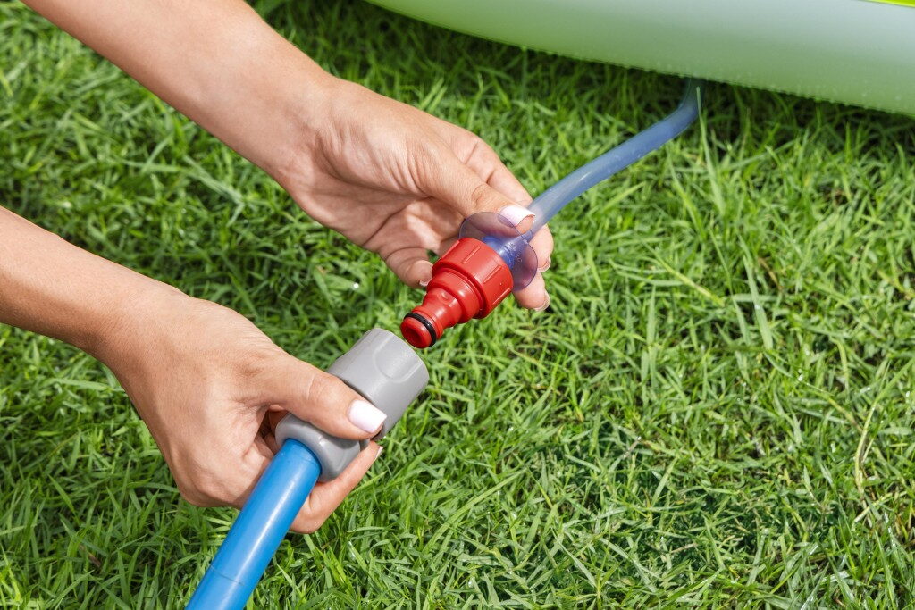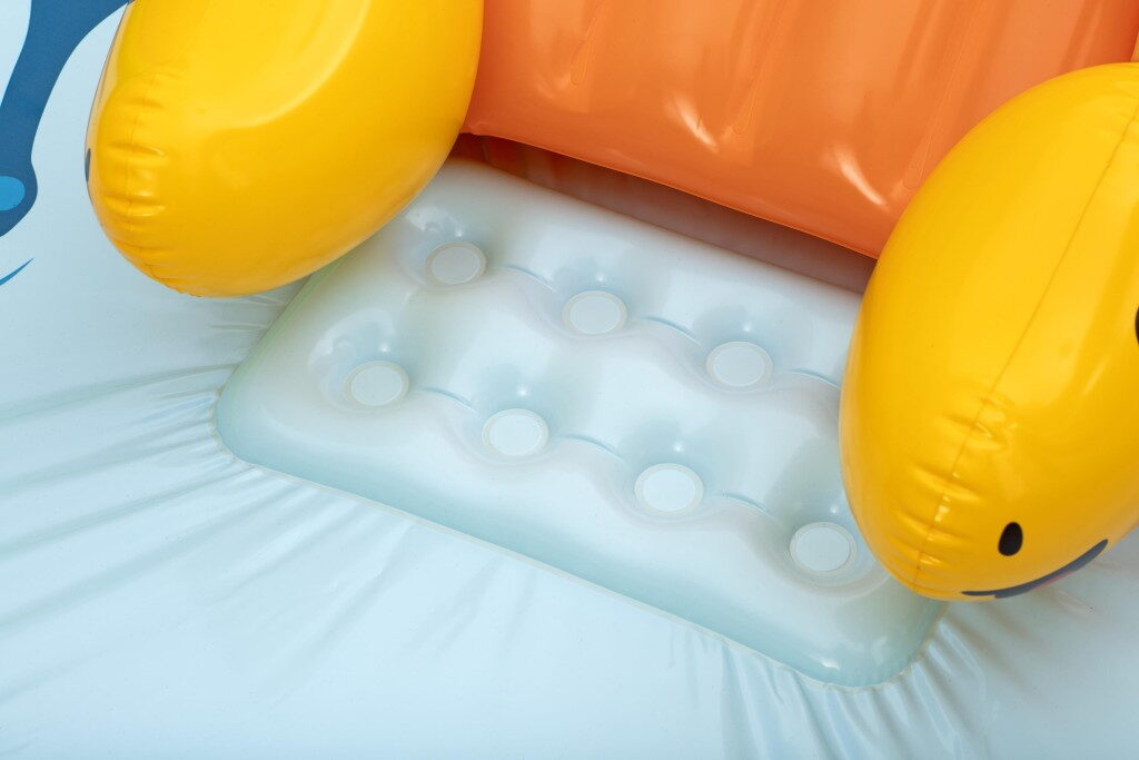 Nafukovací hrací centrum v designu aligátora s rozměry 262× 188 × 102 cm, ideální na letní osvěžení a zábavu pro nejmenších. Je vyrobený z kvalitního a odolného vinylu, který zabezpečuje dlouhou životností. Díky kompaktním rozměrům se skvěle hodí na zahradu anebo terasu. Bazén se jednoduše nafukuje a je připravený na používaní v průběhu několika minut. Ideální na vodní hry v období teplých dní. Objem vody bazénku: 150 l. Objem vody ve vodní dece: 80 l.