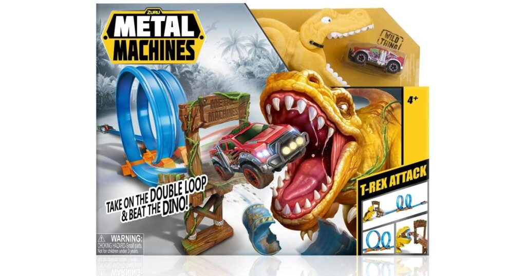 Hrací sada s dráhou, T-Rexem a kovovým autíčkem