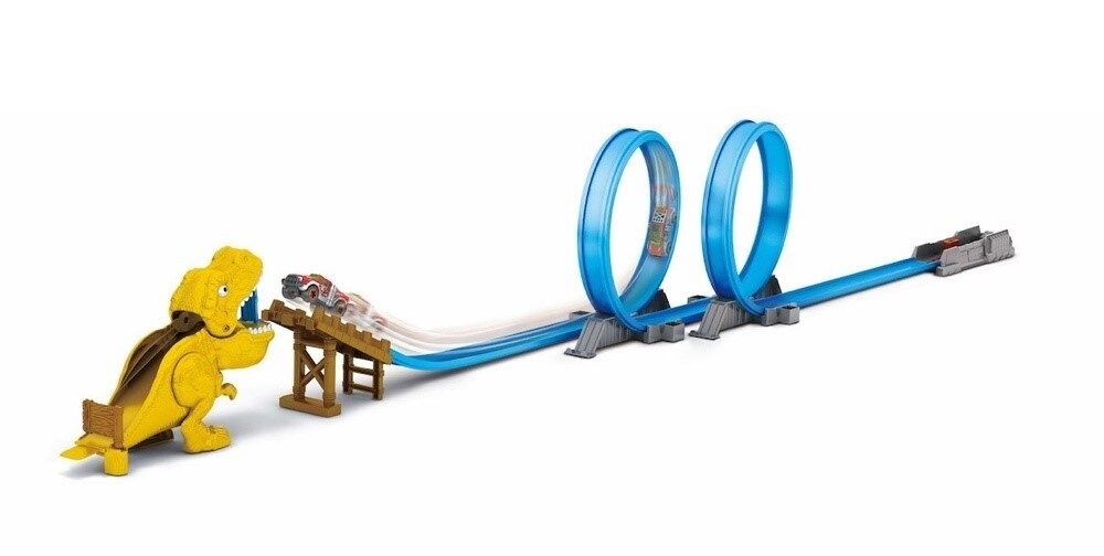 Vstupte do světa akčních závodů s Playsetem T-REX. Tento dynamický set je navržen pro děti od 4 let a nabízí vzrušující zážitek z rychlých jízd a překonávání překážek.Obsah balení: 1× kovový model auta – včetně modelu Bone Crusher, 1× výkonný odpalovač – pro rychlé starty,2× rovné modré dráhy – pro vytvoření závodní trati, 1× T-Rex hlava – s odnímatelnou horní částí, kterou je třeba překonat, 1× spojovací prvek – pro propojení dráhy, 1× náhradní gumička – pro odpalovač a 1× návod – pro snadnou montáž.
