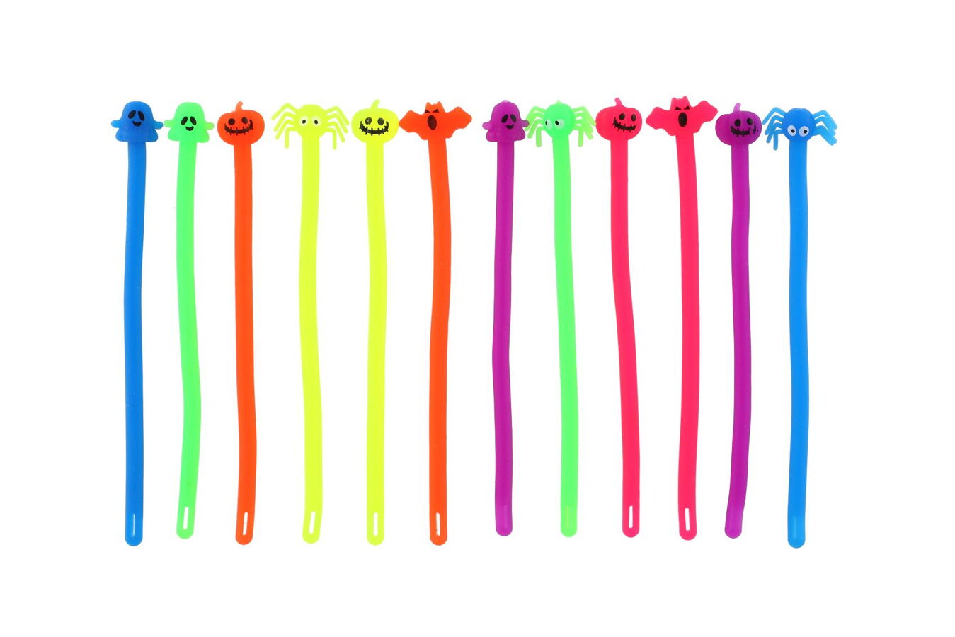 Figurky ve tvaru dýní, pavouků, duchů a dalších strašidelných postaviček jsou vyrobeny z pružného a příjemného silikonu, který lze natahovat, ohýbat a kroutit dle libosti.