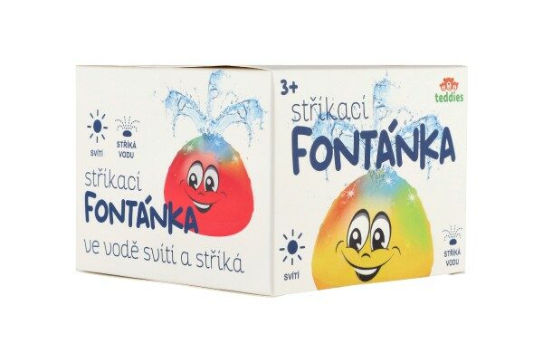 Veselá svítící fontánka se postará o parádní zábavu dětí ve vaně nebo v bazénu. Fontánka se aktivuje položením na vodní hladinu, kdy se spustí světelné efekty a fontánka začne stříkat vodu. Dítě zaujme i rozesmátý obličej hračky. Fontánka je na baterie 3x AAA, které nejsou vložené.