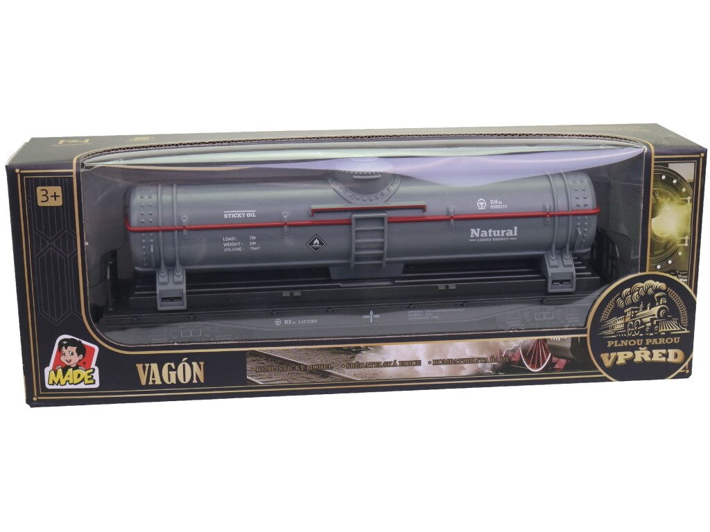 Cisternový vagón MaDe dodá vaší železniční soupravě ten správný industriální nádech. Šedý design a klasický tvar podněcují dětskou představivost – možná převáží palivo, vodu nebo tajný lektvar. Hračka je vyrobena z kvalitního plastu a díky kompaktním rozměrům je ideální do malé dětské ruky i na domácí koleje.Specifikace