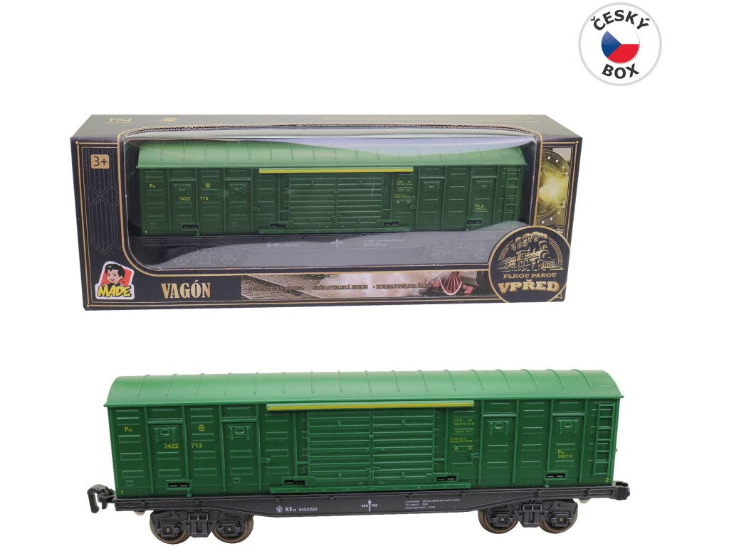 Rozšiřte svou vláčkodráhu o realistický krytý vagón se světelnými efekty! Hračka od MaDe potěší každého malého železničáře.