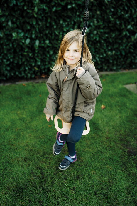 Houpací disk značky Small Foot je absolutním poutačem doma i na zahradě. Je vyrobený z robustního masivního dřeva v kombinaci s černými lany. Můžete ho používat vsedě, kde se děti mohou držet madel, ale také i ve stoje. Díky drážkám na povrchu sedáku je tato houpačka protiskluzová a bezpečná. Robustní lano je výškově nastavitelné. Kovový kroužek umožňuje houpačku rychle zavěsit i sundat. Unese až 100 kg hmotnosti a je tedy vhodná i pro dospělé. Skvělá houpačka pro vnitřní i venkovní prostory, která trénuje ovládání těla, sílu a obratnost. Kdo se dokáže rozhoupat nejvýše?