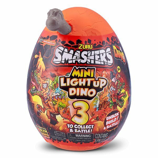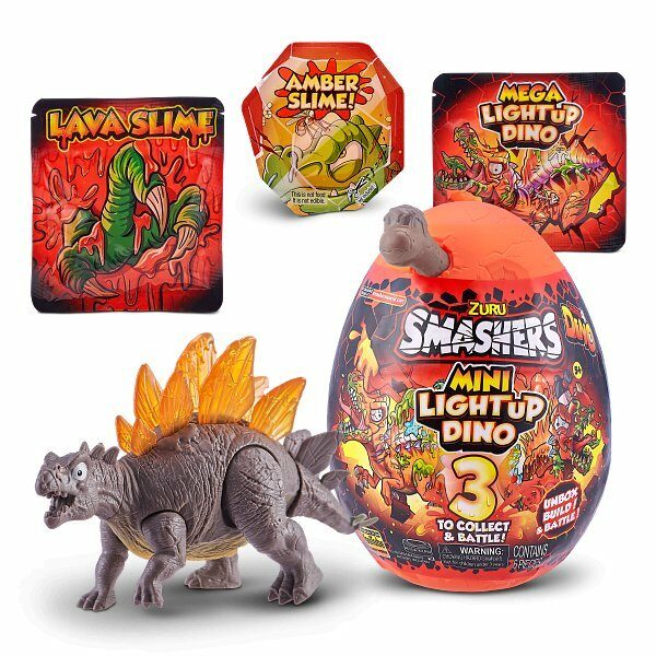 Svítící dinosaurus v meteoritu. Otevřete meteorit, ponořte se do lávy, roztrhej sliz a sestavte si svého úžasného svítícího dinosaura. Nejdříve musíte dostat části dinosaura ze slizu a lávy a poté ho sestavit dle plánku. Po kliknutí na přepínač na těle se dinosaurus rozsvítí. Vajíčko ukrývá 3 druhy dinosaurů: T-Rex, Spinosaurus a Stegosaurus. Sesbírejte všechny a udělejte si doma svítící dinosauří sbírku Smashers. K dispozici je aplikace v anglickém jazyce, která vám zaručí ještě více zábavy a propojení s dinosaury skrz váš mobil.