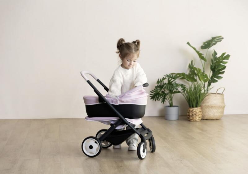 Kombinovaný kočárek pro panenky Smoby Maxi Cosi potěší každou malou maminku. Díky odnímatelné korbičce a otočným kolečkům nabízí realistickou a pohodlnou hru na péči o miminko.