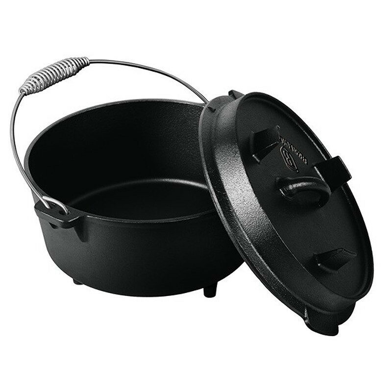 Tento litinový hrnec je ideální pro použití v troubě i na zahradní párty na ohni nebo grilu. Je vyroben z těžké litiny, která přenáší a udržuje teplo rovnoměrně. Hrnec má objem 4 litry a jeho rozměry jsou 25x14,5 cm. Je vybaven víkem s nerezovou rukojetí. Černá barva dodává hrnci elegantní vzhled.