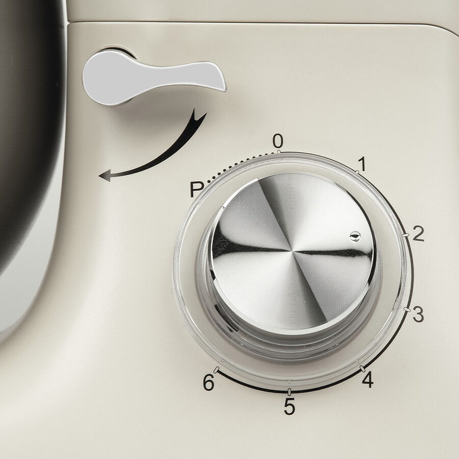 - příslušenství: hliníkový hák na těsto a mixér, nerezová metla (nebo planetární), průhledné plastové víko
