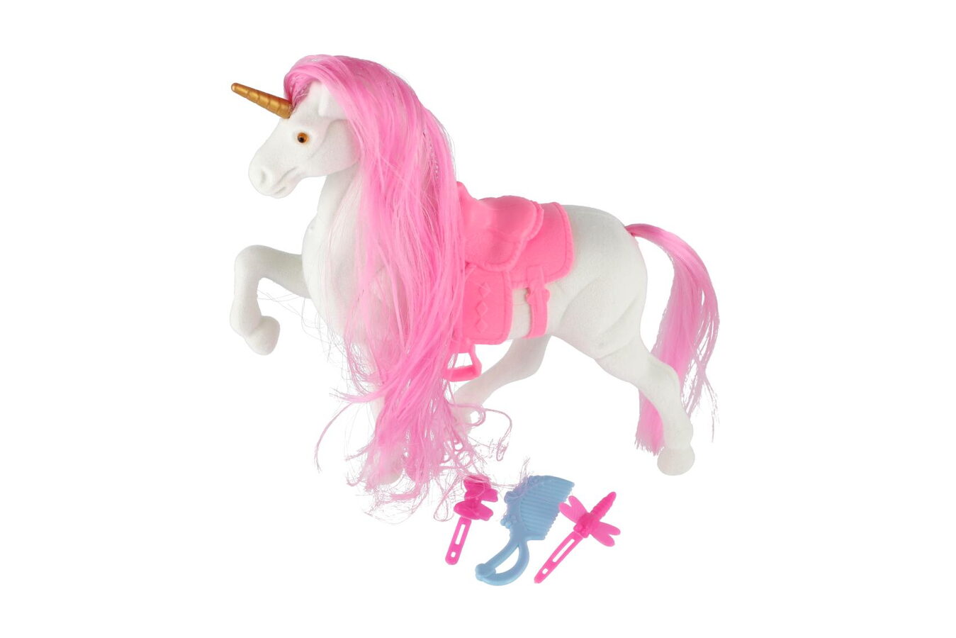 Krásný jednorožec s česací hřívou na každé dobrodružství. Součástí je sedlo a stylové doplňky, které zaručeně potěší malé chovatele.