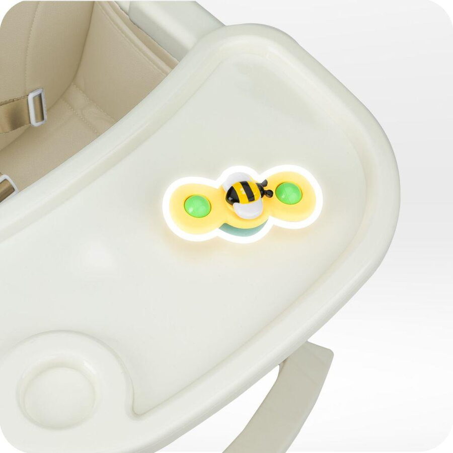 •Spolu se židličkou na krmení MoMi REKI je dodávána poutavá hračka, která dítěti zpříjemní čekání na jídlo. Díky přísavce je hračka připevněna k tácu, což znamená, že ji nebudete muset neustále zvedat.