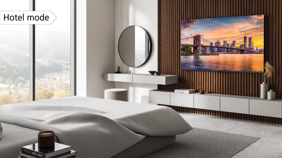 Televize nabízí hotelový mód, který umožňuje zamknout vybraná nastavení. Díky tomu ji lze bez obav umístit i do společných prostor. Hosté si vyladí hlasitost nebo přepnou kanály, ale hlavní konfigurace zůstane nedotčena.