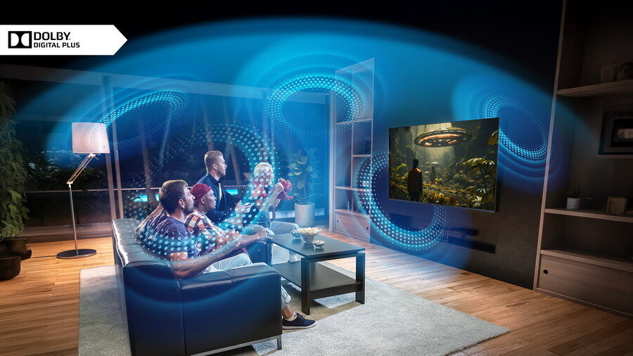 Díky pokročilým technologiím uslyšíte všechny zvuky přesně tak, jak je zamýšleli filmoví režiséři nebo hudební producenti. Dolby Audio Processing zajistí čistý, vyvážený zvuk, který zachovává každý detail dialogů, hudby i efektů. Zatímco Dolby Digital Plus přináší prostorový zvuk, který naplní místnost a dodá scénám živost. Výsledkem je fantastický zážitek z obsahu, který vás opravdu vtáhne do