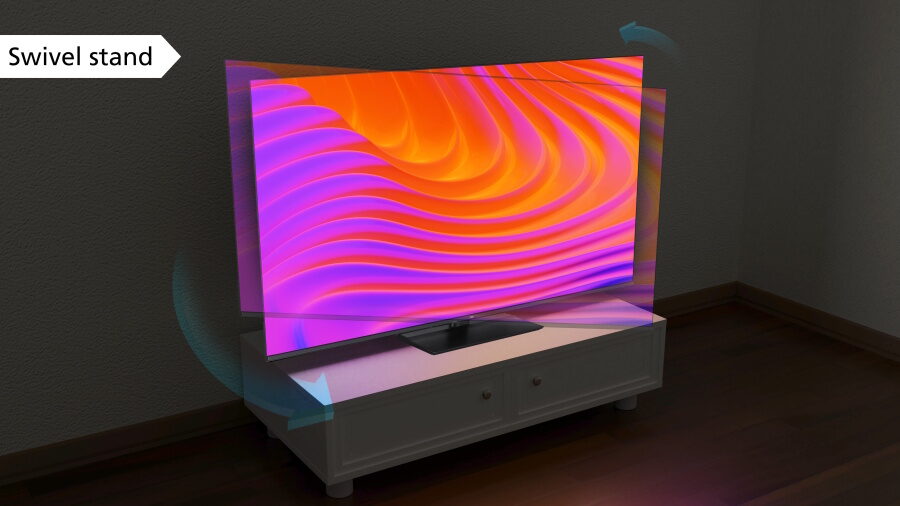 Televize je vybavena praktickým otočným středovým stojanem, který vám umožní natočit obrazovku do ideální pozice. Díky tomu máte vždy perfektní úhel pohledu, ať už sedíte na gauči, v křesle nebo třeba u jídelního stolu. A pokud dáváte přednost statickému umístění na zeď, televize podporuje standard VESA 600 × 300 mm. Snadno ji tak připevníte pomocí univerzálního držáku a v místnosti vám vznikne více prostoru.