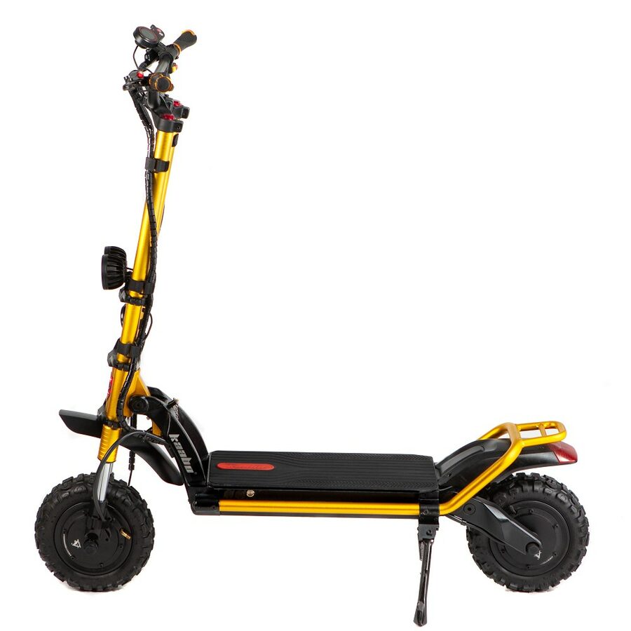 S dojezdem až 150 km není potřeba nabíjet každý den. Vyztužený hliníkový rám zaručuje zvýšenou odolnost. Váha 48 kg je u takto robustní a výkonné koloběžky bezkonkurenční.