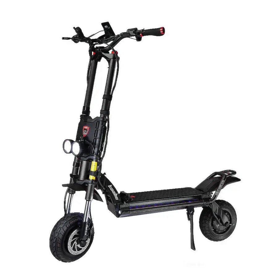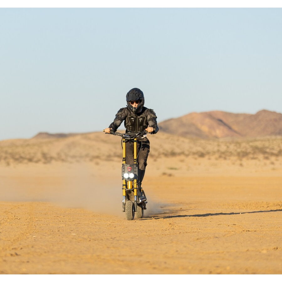 Nabídne Vám neopakovatelný zážitek na silnici i v terénu. Široká 12" hybridní kola v kombinaci s hydraulickým odpružením umožňují jet téměř jakýmkoliv terénem. Dva 2000W motory se nezaleknou ani až 50° stoupání. Kontrola trakce vám pomůže v náročných situacích a nový 100A kontroler, který v režimu „S“ (sport) dokáže krátkodobě navýšit výstupní proud až na 110 A, vám doslova vyrazí dech.