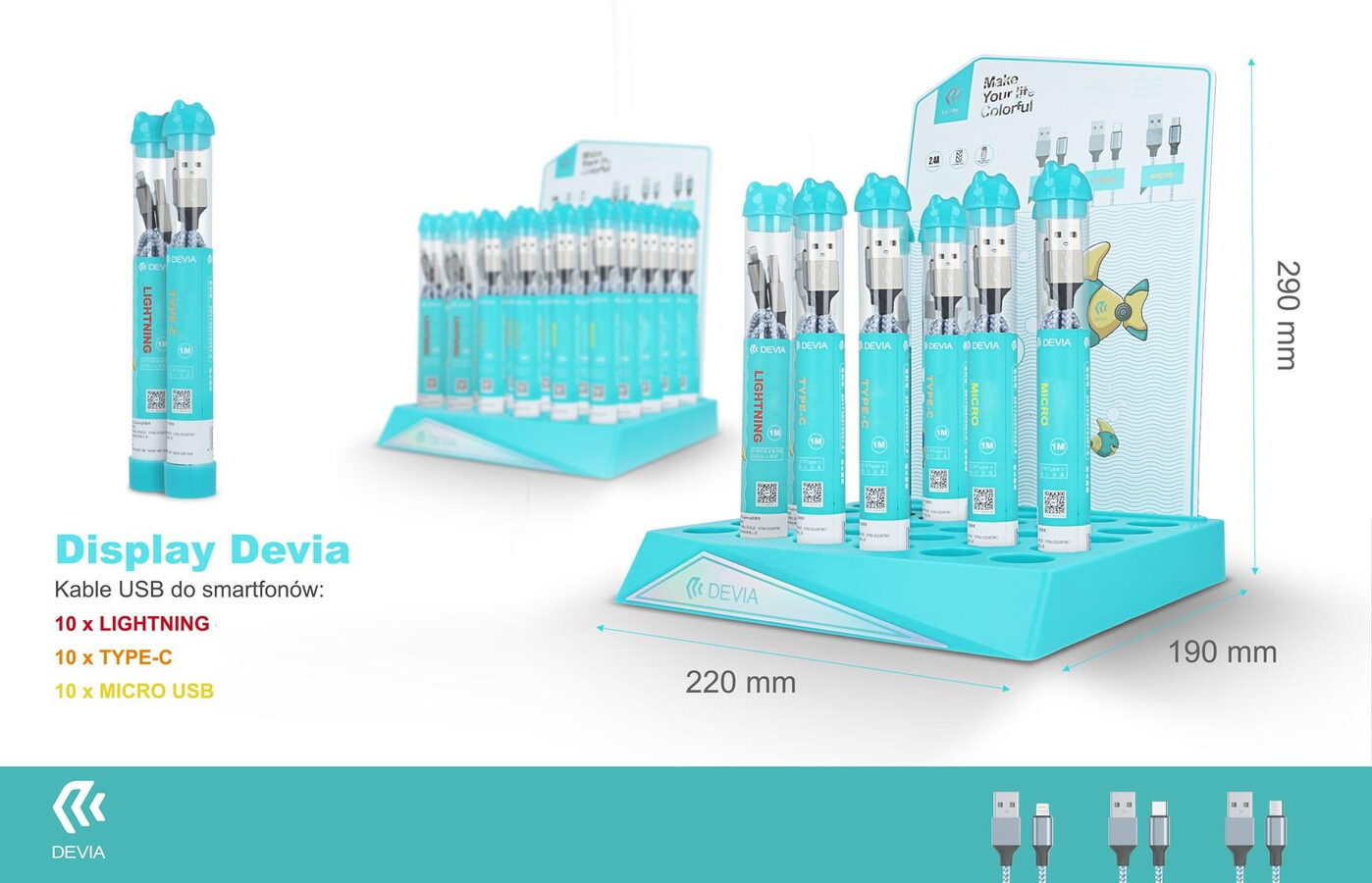 DEVIA Vogue lightning je kabel určený pro zařízení s konektorem Lightning. S pomocí tohoto kabelu snadno dobijete podporované přístroje značky Apple. Kabel mimo nabíjení využijete i k přenosu dat mezi počítačem a telefonem nebo tabletem.
