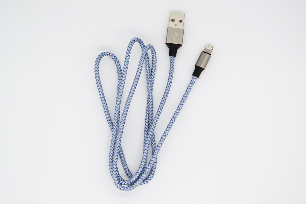 Pletený, designový lightning kabel o délce 1 m. Díky opletení lze kabel zajistit do přenosnějšího a pevnějšího tvaru. Konektory: lightning, USB 2.0.