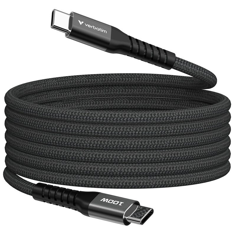 Verbatim magnetický kabel Sync & Charge USB-C to USB-C 100W – magnetické provedení kabelu umožňuje snadné připojení jednou rukou, chrání porty zařízení a poskytuje vysoký výkon pro rychlé a spolehlivé nabíjení.