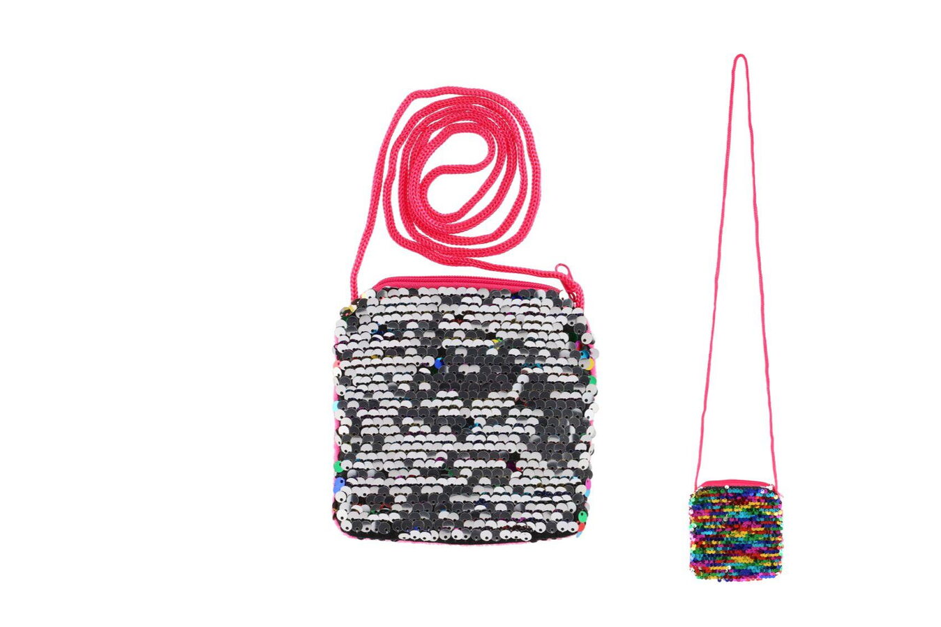 Kabelka pro každou malou parádnici. Klasický tvar čtvrce ale neznamená nudu! Pomocí flitrů měníte barvu třpytek! Budeš chtít duhově barevnou nebo s elegantní stříbrnou? Tak či tak tvůj outfit bude mít šmrnc a důležité maličkosti tak budeš mít kam dát!