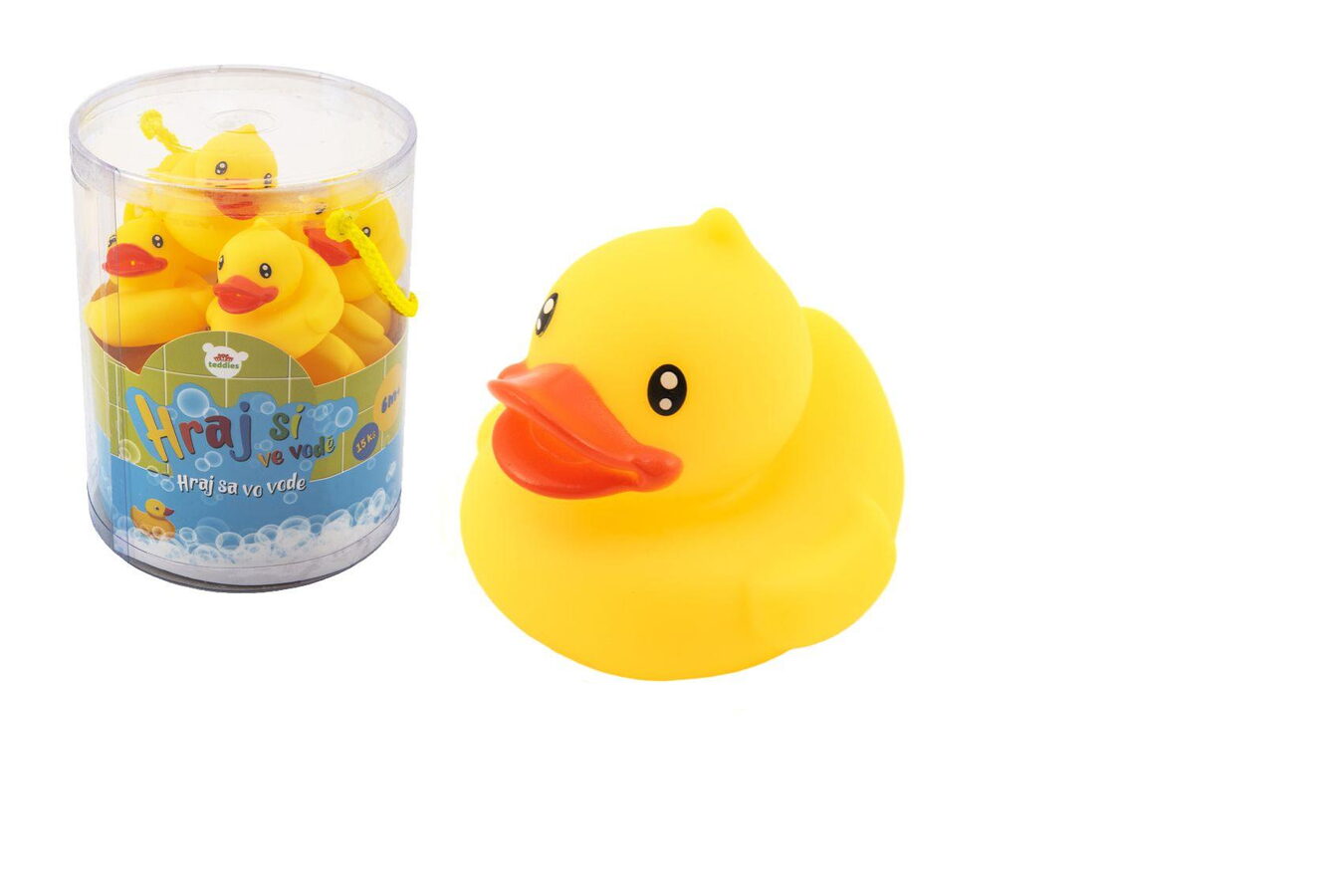 Krásná žlutá kačenka. Kačenka měří 6 cm a je vyrobená z gumy. Tato hračka bude skvělým společníkem pro chvíle strávené ve vaně. Při své poklidné plavbě na hladině vody zpestří koupání každého dítka.