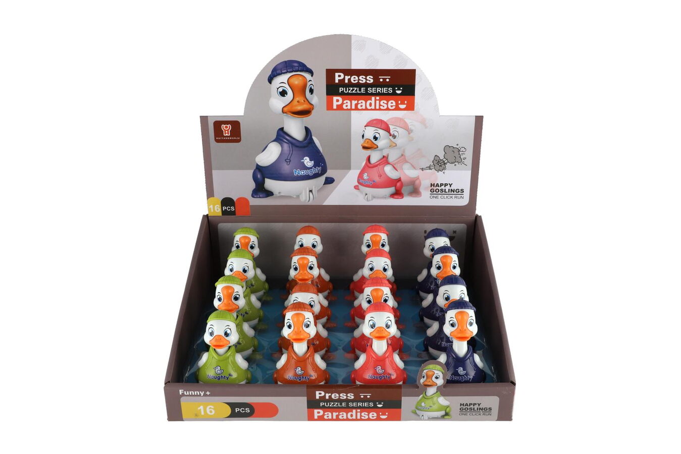 Kačer zmáčkni a jeď plast 9cm na setrvačník 4 barvy 16 ks v boxu