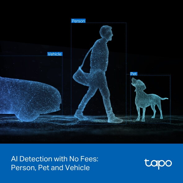 Kamera využívá pokročilou AI, která rozpozná osoby, zvířata i vozidla – bez měsíčních poplatků. Díky funkci „One-Tap Focus“ rychle zaostří na vybranou oblast. Notifikace a nahrávky lze přizpůsobit pomocí zón a citlivosti.