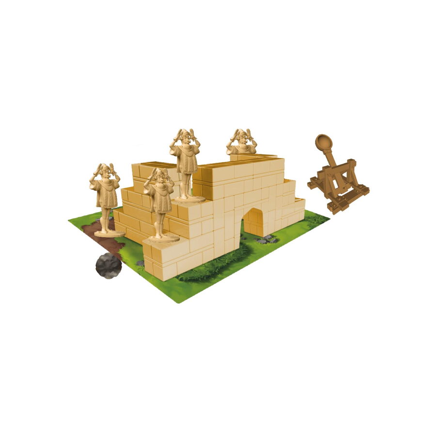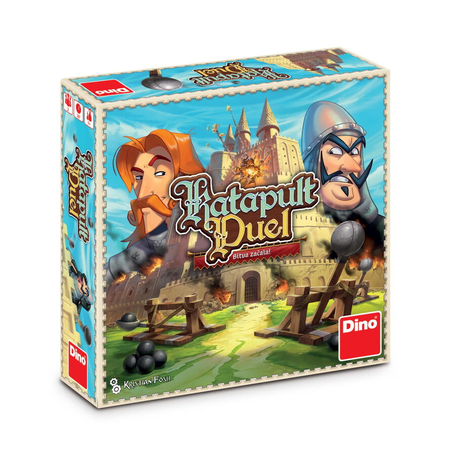 Souboj katapultů právě začíná! Postavte své hrady pevně a rozmístěte obranné jednotky chytře. Hrajte takticky s kartami nebo prostě jen střílejte. Vítězem se stane ten, kdo protihráči shodí poslední figurku. Hra od 7 let pro 2 hráče.