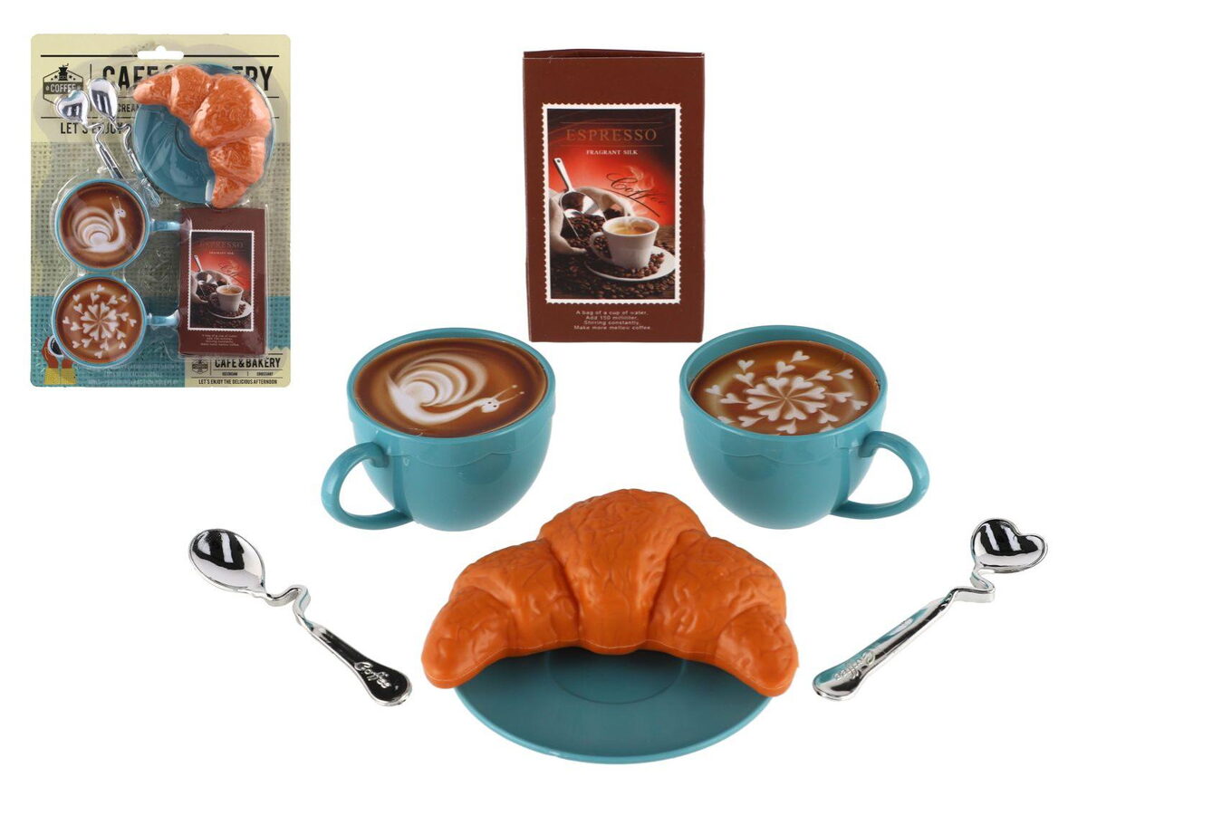 Kávová sada s doplňky plast na kartě 17x23cm
