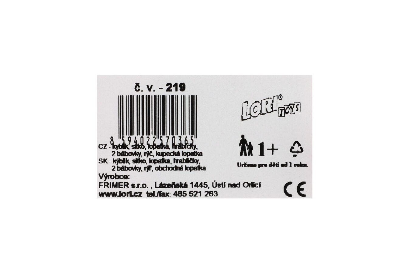 Lori 219 Kbelík sítko lopatka kupecká lopatka hrabičky plast v síťce 20x28x12cm 12m+