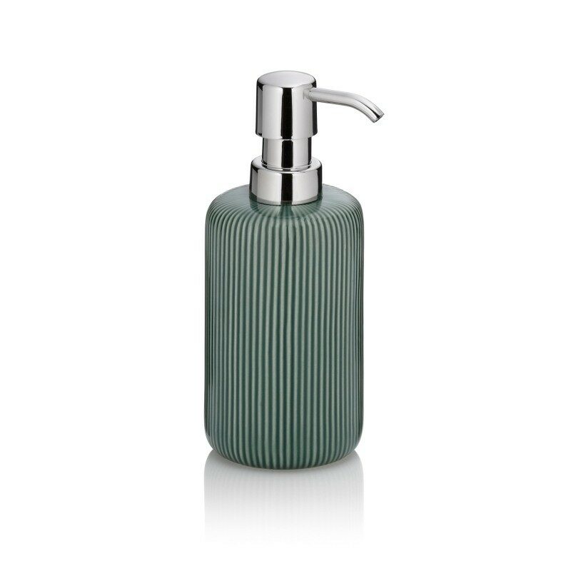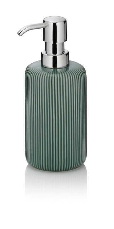 Barva pro vaši koupelnu: velký, krásný keramický dávkovač mýdla Ava o objemu 350 ml. Dávkovač mýdla zaujme svou alpskou zelenou barvou. Výměnná hlava čerpadla je vyrobena z plastu, pochromovaná. Výška: 17,5 cm Keramický 7,5 cm, v. 17,5 cm