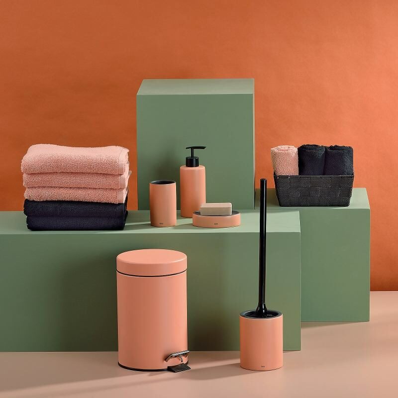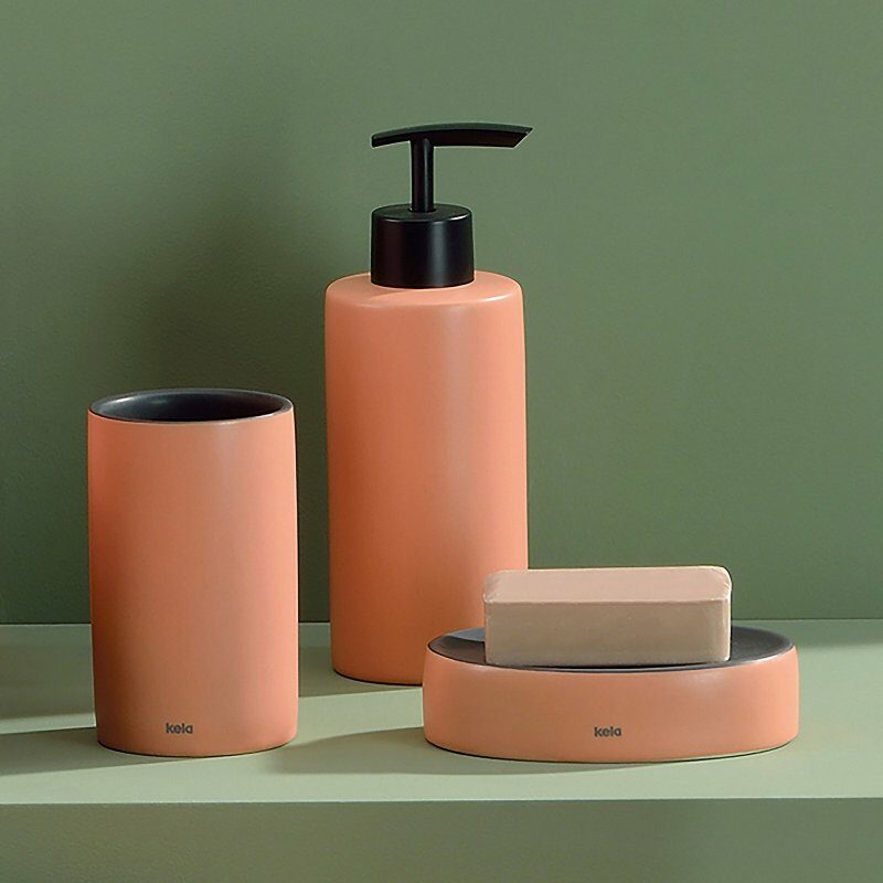 Dávkovač mýdla Matsi v broskvově růžové barvě: průměr 7 cm, výška 19,5 cm, objem 300 ml