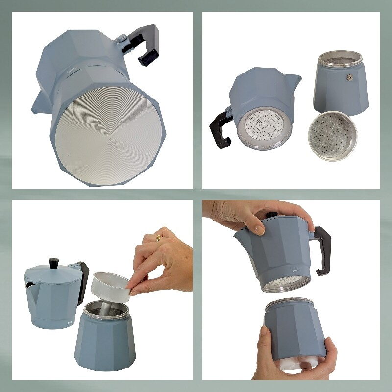 Konvice na espresso Italia, hliníková, kouřově modrá, 6 šálků (300 ml), 19 × 9 cm