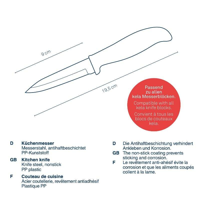 Nůž Acida od značky KELA je univerzální pomocník pro každodenní kuchyňské práce. Díky ostré čepeli z nerezové oceli a ergonomické rukojeti z PP zvládnete krájení, sekaní i porcování rychle a pohodlně.