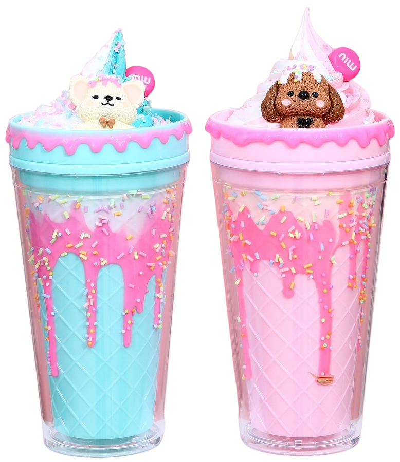 Kelímek s víčkem a brčkem Zmrzlinový Medvídek 480ml - více variant