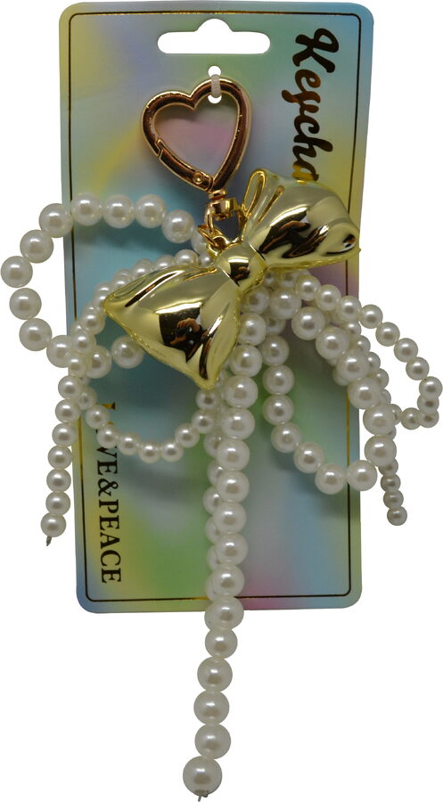 Keychain Přívěsek na klíče - Perly s mašlí a srdcem