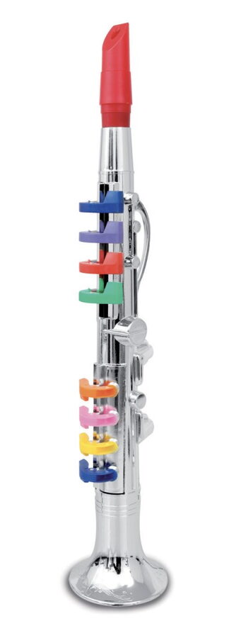 Klarinet stříbrný s 8 klapkami. Velikost 43 cm. Vyrobeno v Itálii.