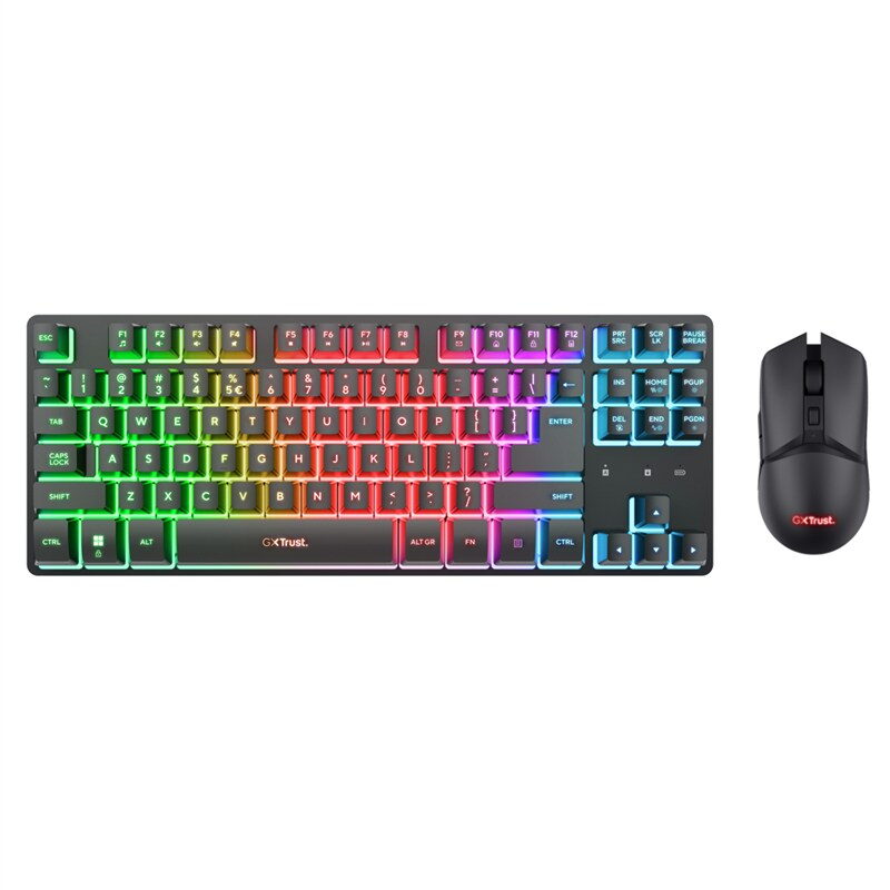 Hraj bez omezení s bezdrátovým setem Thado Wireless TKL Keyboard & Mouse Combo. Jediný USB-A přijímač zajišťuje ultranízkou latenci, takže reakce jsou okamžité. Kompaktní TKL klávesnice uvolní místo pro širší pohyby myší a její RGB podsvícení dodá styl. Klávesnice vydrží až 420 hodin na baterii, myš až 30 hodin, takže se můžeš soustředit na hru místo nabíjení. Odolná kovová konstrukce klávesnice, šest tlačítek na myši a DPI až 6 400 dávají jistotu kontroly napříč žánry i platformami.