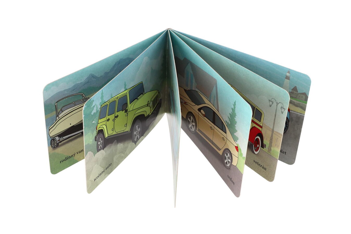 Viete, aké existujú osobné autá? Vydajte sa s naším leporelom po ceste a spoznajte, ako vyzerá kabriolet, veterán, pick-up a množstvo ďalších áut.