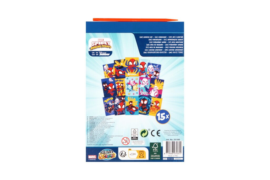 Kreativní kniha s motivy oblíbených postaviček Spidey, která nabízí originální způsob tvoření. Pomocí speciální škrabky děti postupně odkrývají barevné podklady a vytvářejí tak nádherné obrázky svých oblíbených hrdinek.Formát A5, ideální na doma i na cesty,rozvíjí kreativitu, fantazii a jemnou motoriku,jednoduché a zábavné tvoření bez nepořádku. Kniha obsahuje 15 obrázků.