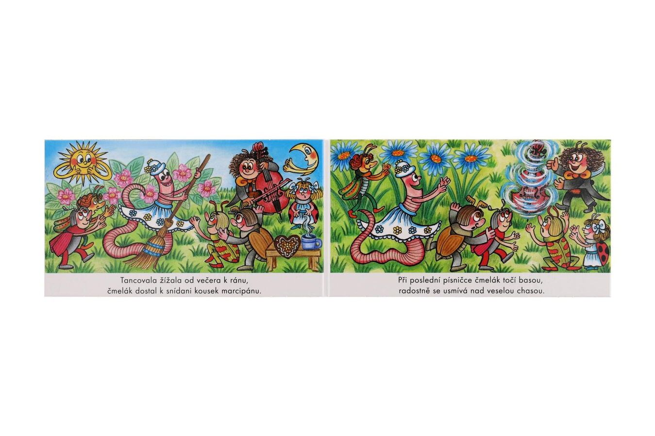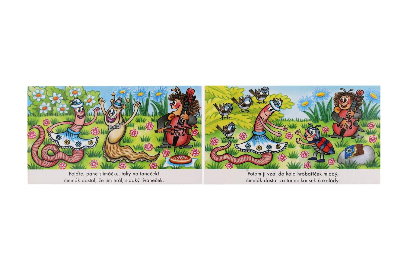 Kočka leze dírou, pes oknem! Malé rozkládací leporelo přináší lidovou písničku Kočka leze dírou a dětské verše Václava Bláhy Tancovala žížala, které se děti snadno naučí zpaměti. Výrazné rytmické verše doprovázejí líbivé a názorné ilustrace a dítě si bude při jejich prohlížení rozvíjet paměť i slovní zásobu. Leporelo tak svým charakterem navazuje na velmi úspěšný titul Polámal se mraveneček.