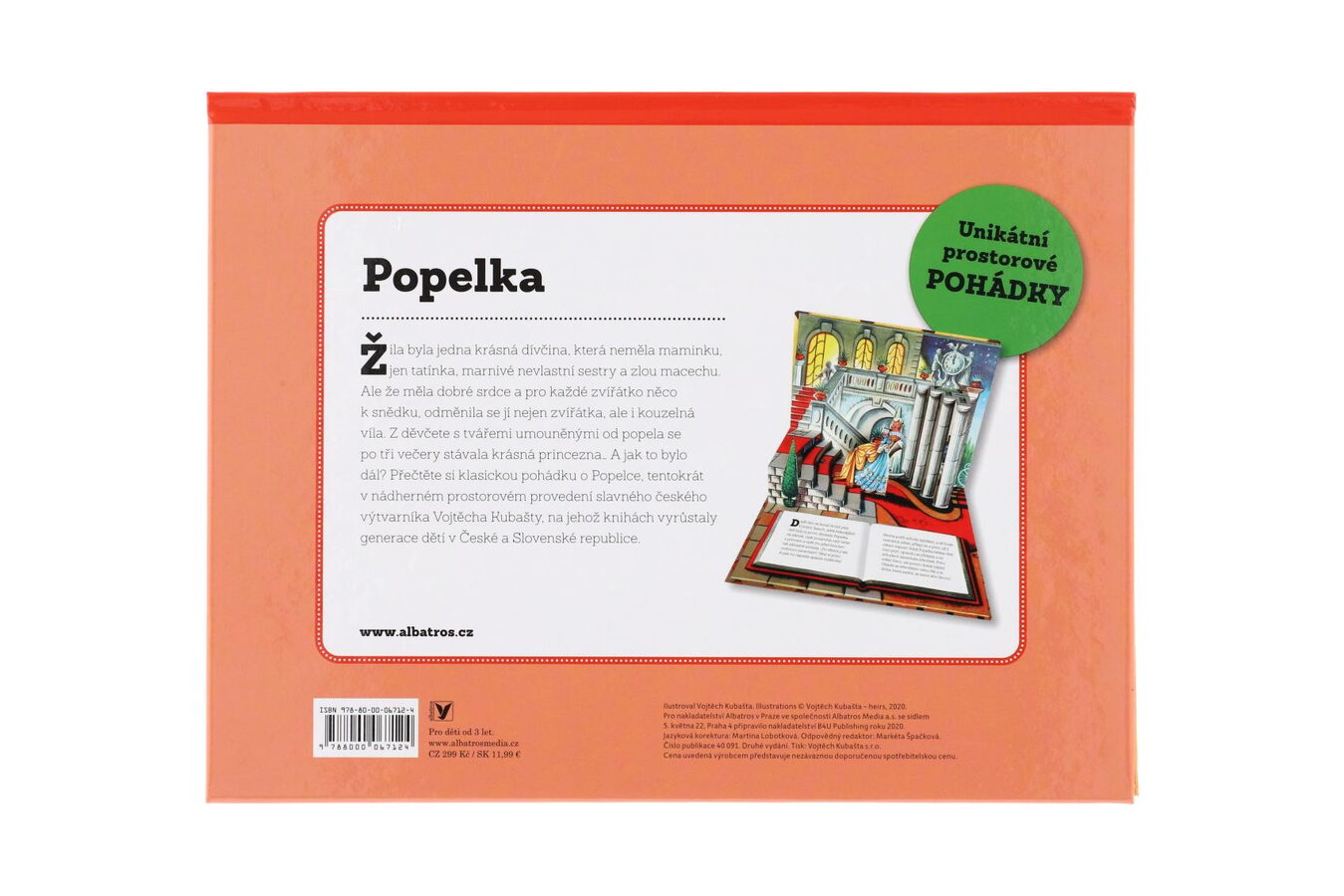 Žila jedna krásná dívka, která měla jen tatínka, marnivé nevlastní sestry a zlou macechu. Ale že měla dobré srdce a pro každé zvířátko něco k snědku, kouzelná víla se jí odměnila. Z děvčete s tvářemi umouněnými od popela se stala po tři večery princezna. Přečtěte si klasickou pohádku o Popelce, tentokrát v prostorovém provedení slavného českého výtvarníka Vojtěcha Kubašty, s jehož knihami vyrůstaly celé generace dětí.