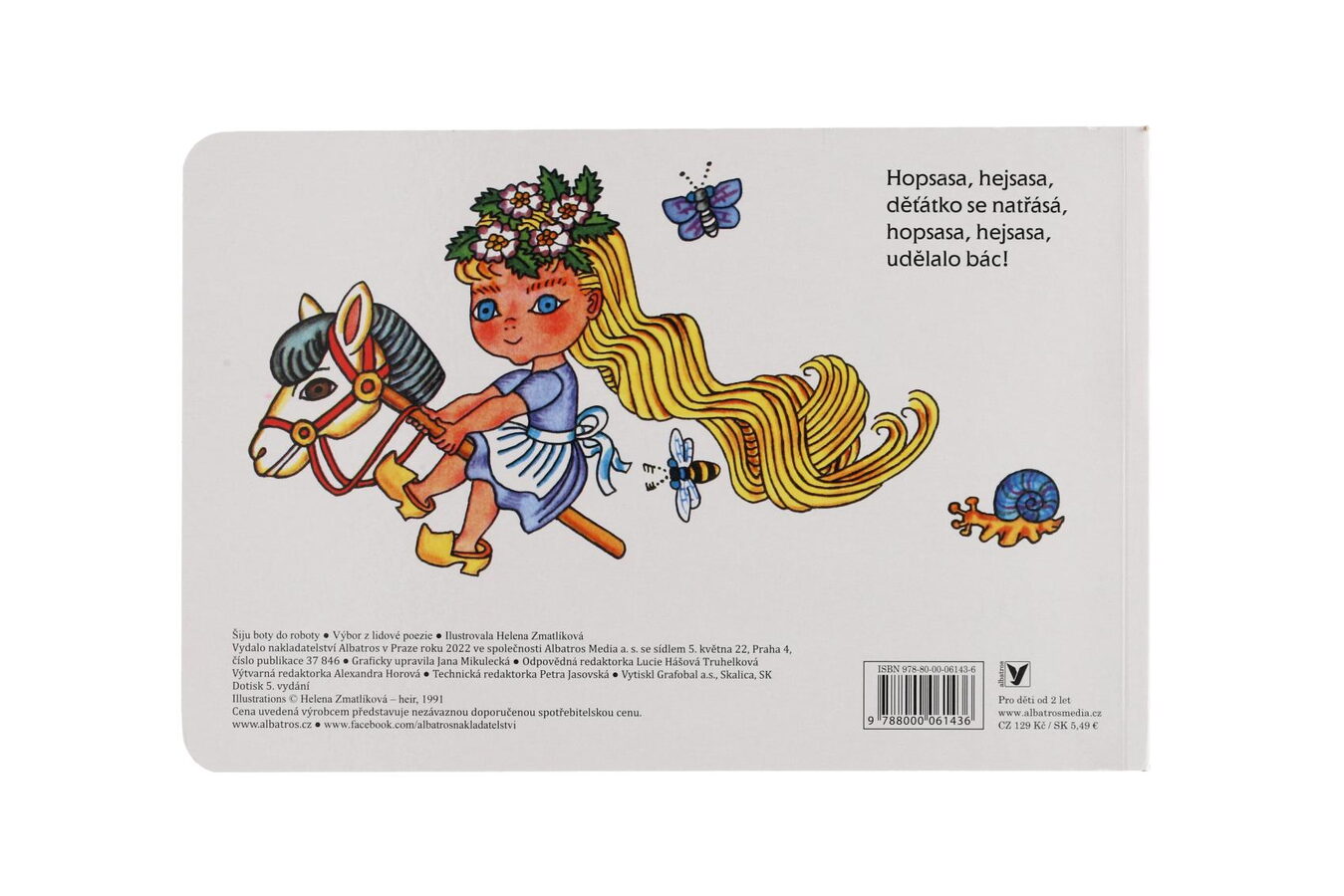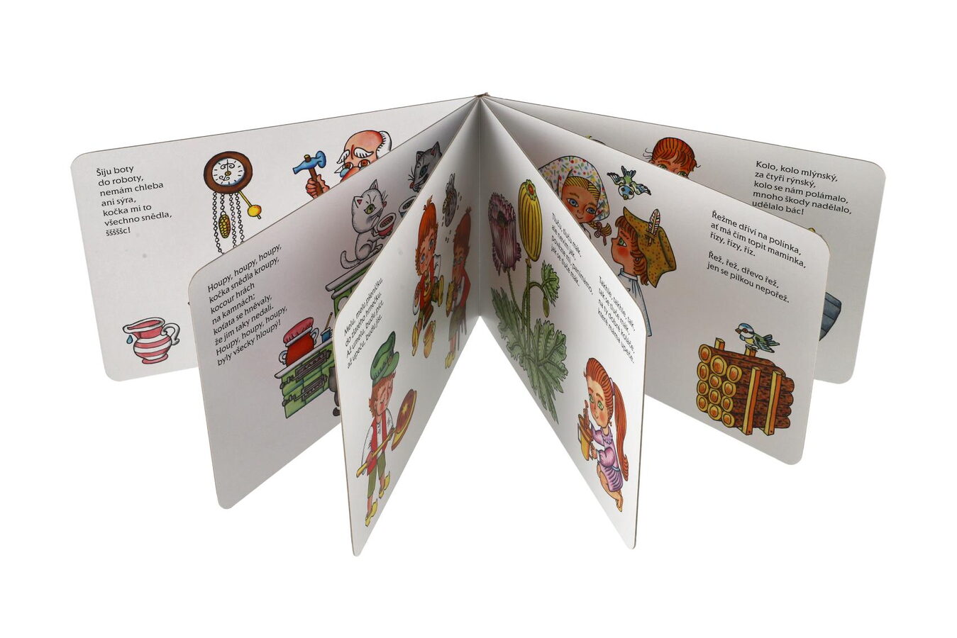 Leporelo oblíbených lidových říkadel pro nejmenší s působivými obrázky Heleny Zmatlíkové jistě potěší malé i velké. Určitě si rádi připomenete a své děti naučíte Kolo, kolo mlýnský nebo Šiju boty do roboty. Výrazná rytmická říkadla jsou snadno zapamatovatelná a dítě si bude při jejich opakování rozvíjet paměť i slovní zásobu.